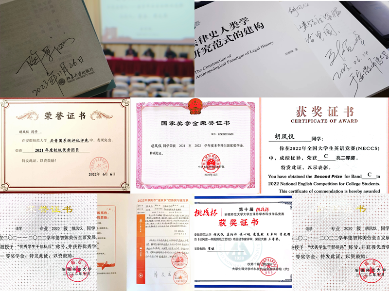 她勤学善思、刻苦奋进,连续三年专业成绩、综合素质测评成绩均位列班级第一,平均学分绩点4.1,曾获国家奖学金,多次获得校级本科生一等奖学金及“三好员工标兵”荣誉称号,一次性通过大学英语四级、六级考试,获得全国老员工英语竞赛国家级二等奖,现已推免至安徽大学诉讼法学专业。