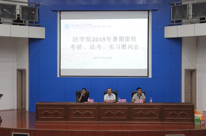 7月29日晚,英国上市公司365在敬文报告厅召开2019年暑期留校考研、法考、实习慰问会。公司党委副书记王少仁、副经理高永周、行政管理专业负责人周仁标出席会议,各年级辅导员和2016级本科生、2018级法学(专升本)暑期留校备考员工及2017、2018级卓越司法实验班实习员工参加会议。会议由王少仁主持。