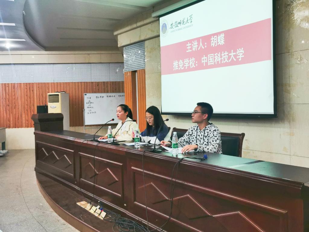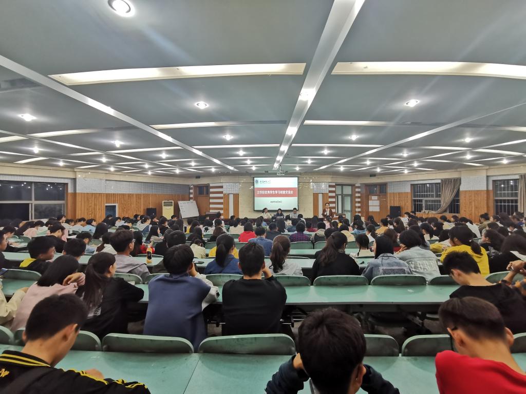 本次经验交流会由经验分享、提问答疑等多个环节组成。会上,分别邀请到了推免中国科学技术大学的胡蝶学姐、推免华东政法大学的高婉月学姐以及推免本校的刘岩学长。三位“小老师”分别就自己的保研经历和大学学习经历侃侃而谈,语言幽默风趣,内容生动切实,将大学四年的学习生活故事娓娓道来,不仅介绍了自己的心得体会,也向台下的新生们传达了自己的期望和鼓励。