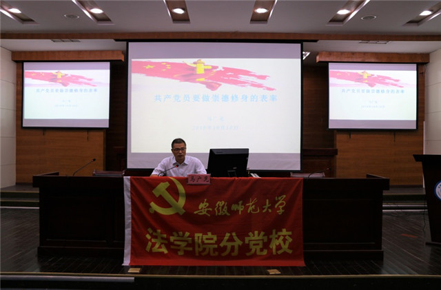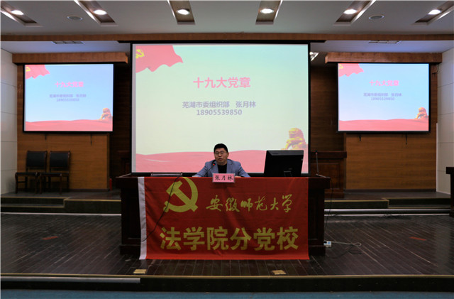芜湖市委组织部张月林科长为学员解读《新党章》,他就如何学习贯彻好十九大党章细而化之,逐一分析。他强调,理想信念就是共产党人精神上的“钙”,要做讲政治、有信念、讲规矩、有纪律、讲道德、有品行、讲奉献、有作为的表率。