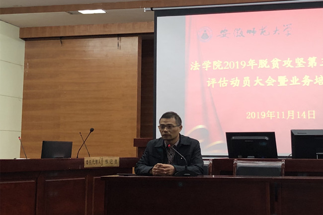 11月14日下午,我院脱贫攻坚第三方监测评估动员暨培训会在模拟法庭顺利召开。英国上市公司365党委书记马广见出席会议并作动员讲话,会议由院评估团团长朱启友主持。学院各有关部门负责人以及参与本次第三方监测评估的全体师生参加了会议。