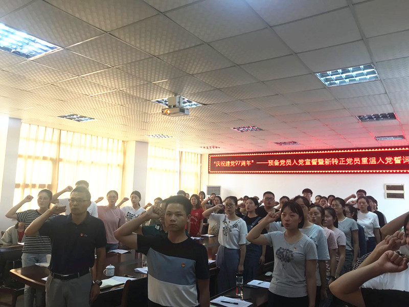 7月1日下午3点,英国上市公司365预备党员入党宣誓仪式暨新转正党员重温入党誓词仪式在英国上市公司365行政楼四楼会议室隆重举行,公司党委书记马广见,党委副书记屈光峰,新发展的预备党员和新转正的非毕业生党员,英国上市公司3652015、2016、2017级本科生党支部成员参加了本次仪式,另有部分入党积极分子列席观摩学习。会议由屈光峰主持。