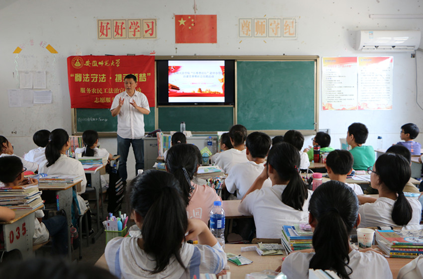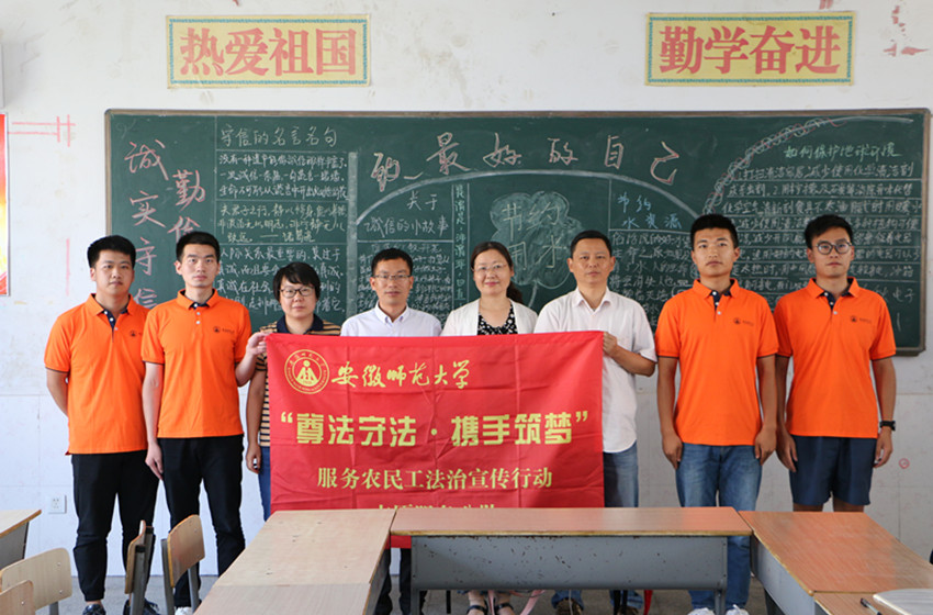 7月20日,校工会主席赵红、公司党委副书记屈光峰、院团委书记王虹圆、公司教师李路根及员工邱浩、冷洪志、田浩、谢晓瑞前往泾县稼祥中学留守儿童中心开展“尊法守法 携手筑梦”服务农民工子女法治宣传活动。