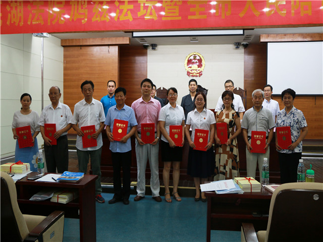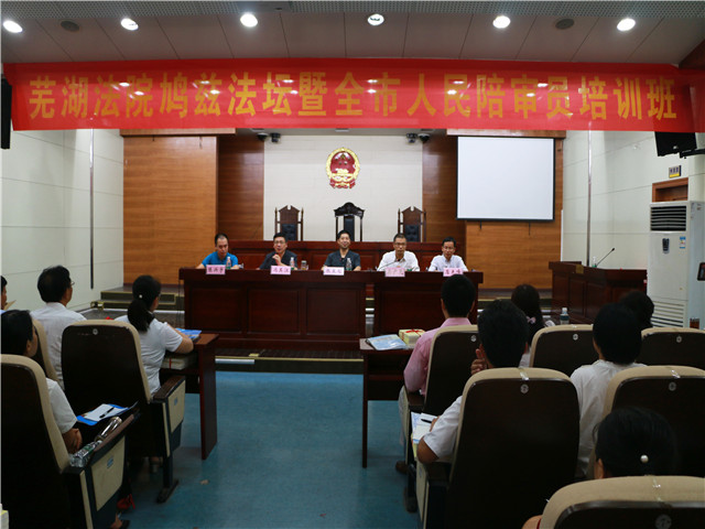 8月10日,芜湖法院鸠兹法坛暨全市人民陪审员培训在英国正版365官方网站教学法庭开班。芜湖市中级人民法公司党组成员、副经理张晨彤、政治部宣教科科长冯其江、公司党委书记马广见、副经理屈光峰、院团委副书记、培训班班主任陈兴宇出席开班仪式,仪式由冯其江主持,来自芜湖市各县区的80余名人民陪审员参加了此次培训。