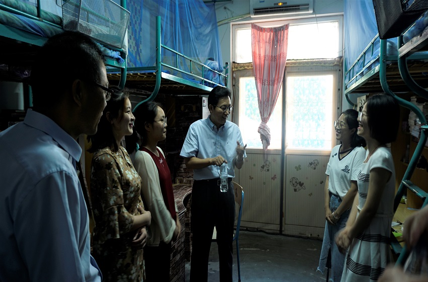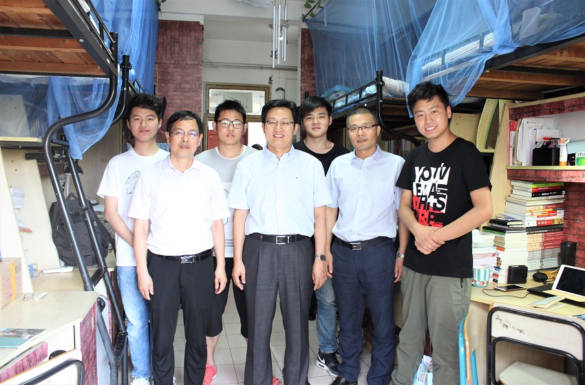 张庆亮先后来到毕业生女生和男生寝室,亲切问候同学们,热情地与同学们唠唠家常,关心就业去向。当了解到,公司今年考取录取继续突破百人大关时,他表示很欣慰,他指出大家入学时录取分数线较高,生源质量较好,公司在一如既往抓好学风的同时,要积极拓展国际化人才培养渠道。听到代渠莎等同学考上国家公务员,他叮嘱道,“公务员,一定要把权力用好。”听到有创业团队正在参加“互联网+”大赛,他鼓励创业者不要惧怕失败,趁年轻,勇敢去闯。对已就业的同学,他相信年轻人前途无量,要把人生奋斗的目标更细化,脚踏实地认真地走好每一步。