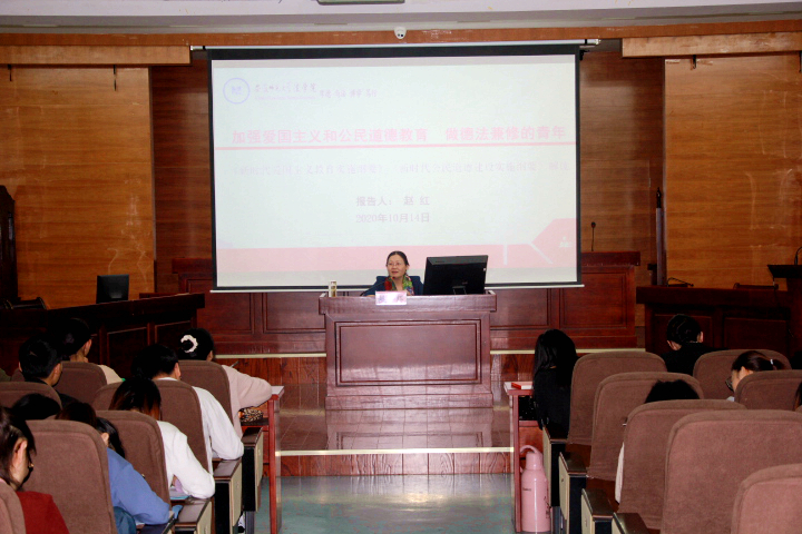 赵红围绕“新时代爱国主题教育、公民道德建设”主题为入党积极分子培训班开讲。她指出:爱国主义是中华民族的民族心、民族魂,是中华民族最重要的精神财富,是维护民族独立和尊严的精神动力,希望培训班学员们能够筑牢理想信念之基,传承中华传统美德,树立正确的民族观、国家观、文化观,端正自己的入党动机,明确自己的入党目的,积极从行动上以及思想上靠拢党组织,珍惜入党机会,忠实地履行义务和正确地行使权力,在学习和社会生活中起先锋模范作用。