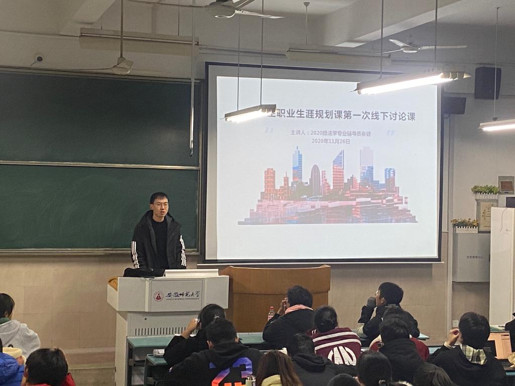 为了培养大一新生的职业生涯规划意识,明晰个人未来发展前景,2020年11月26日晚,2020级法学专业在行知楼103教室召开了老员工职业生涯规划主题班会。2020级法学专业辅导员崔健老师主讲,2020级法学专业全体新生参与此次班会。