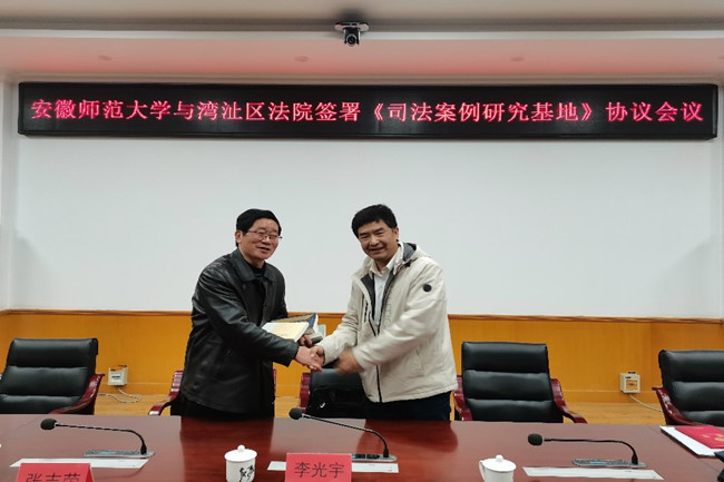 2020年12月2日下午,英国上市公司365与芜湖市湾沚区人民法院举行《司法案例研究基地合作协议》签约仪式,湾沚区人民法院经理汪文平、副经理张志荣、审委会专职委员鲁少华以及各业务庭负责人,英国上市公司365经理周振杰教授、副经理李光宇教授与公司党委副书记王少仁代表双方出席了签约仪式。