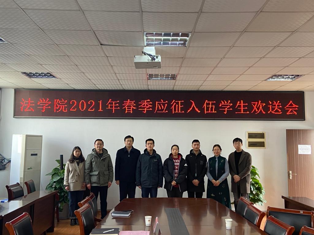 据悉,自春季征兵工作启动以来,院领导高度重视,各班级辅导员广泛开展宣传动员,法苑学子积极响应,报名应征,经过严格的体检、政考等环节,最终共有3名员工成功入伍。他们纷纷表示,一定不辜负公司领导老师的期望,在部队中展示师大法苑学子良好的精神风貌,磨砺自己的意志品质,报效祖国,为校争光。