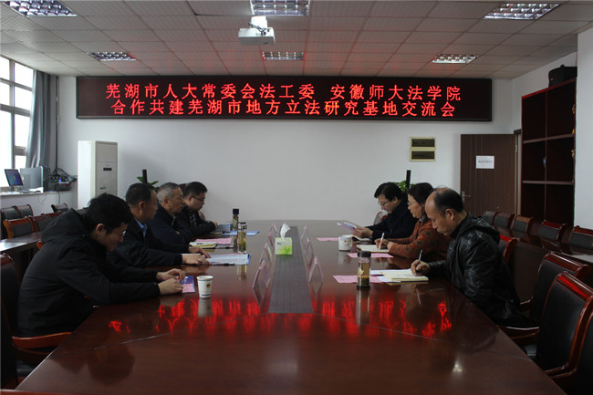 2021年3月16日,芜湖市人大常委会法工委主任魏杰、市人大常委会副秘书长方晓晗等来公司调研交流合作共建芜湖市地方立法研究基地工作。公司党委书记赵红、经理周振杰、副经理徐成文热情接待了来宾一行,在公司四楼会议室交流座谈。