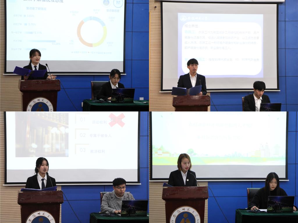 决赛分为选手汇报和答辩、评委提问两个环节进行。各团队代表分别围绕农民工养老、大气污染治理、个人信息保护等社会热点问题以及我国社区矫正现存在问题、认罪认罚从宽制度等法律相关问题进行了精彩汇报和答辩。评委从研究选题、研究内容等角度分别提出了问题及建议。比赛结束后,陈爱如老师代表评委组老师进行了点评。他肯定了参赛选手们较为成熟的调研设计以及认真的调研态度,同时特别指出虽然评委老师言语较为犀利,但这正是获得成长的必由之路。希望通过“创新杯”这一培养员工的重要载体,选手们都能从稚嫩幼苗成长为参天大树。