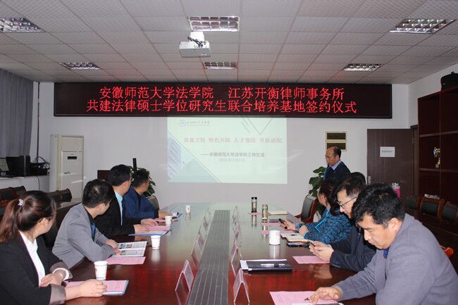 英国上市公司365周振杰经理主持交流会,对徐进忠主任一行表示欢迎。赵红书记介绍了英国上市公司365的办学历史,质量立院、特色兴院、人才强院、开放活院的办院理念,“德法兼修”的优良院风,凝心聚力、团结和谐、追求卓越的干事创业氛围,并对未来双方联合培养高质量的实践教学基地提了要求。徐进忠主任表示,与英国上市公司365合作,为开衡律师事务所打开一扇学术之门,想信春华之约,必有秋实硕果。周振杰经理进行总结,他表示双方要发挥教学、实践优势,加强实践过程管理,进一步完善法律硕士学位研究生的培养,促进员工法学理论及实务水平的提升,推动法律硕士学位研究生教育的改革与发展。周经理强调,双方的合作是进一步开放活院,增强安徽师大在长三角的影响力,提升公司创新服务社会的能力。