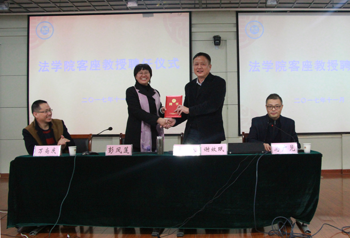 首先,谢效珉分析了法律人应当具备扎实的专业知识、丰富的实践经验、较高的政治素养和良好的职业道德。其次,他结合自身工作经验和我国当前全面深化依法治国方略的时代背景,着重分析了法律与政治的紧密关系。希望作为未来的法律人的同学们要关注政治形势。最后,谢效珉用 “实”、“平”、“纯”三个方面,对大家的法律人之路,给出了中肯的建议。学习法律要踏实,做人要老实;要淡定从容,保持平和的心态,宁静致远;要保持内心世界的纯净,在浮躁的社会中淡泊地看待各种名利和诱惑。彭凤莲在总结时说,在你的气质里藏着你读过的书、走过的路、爱过的人,希望同学们要多读书,读好书,终身学习、终身修养。