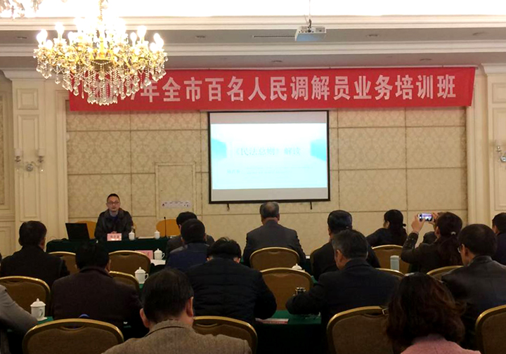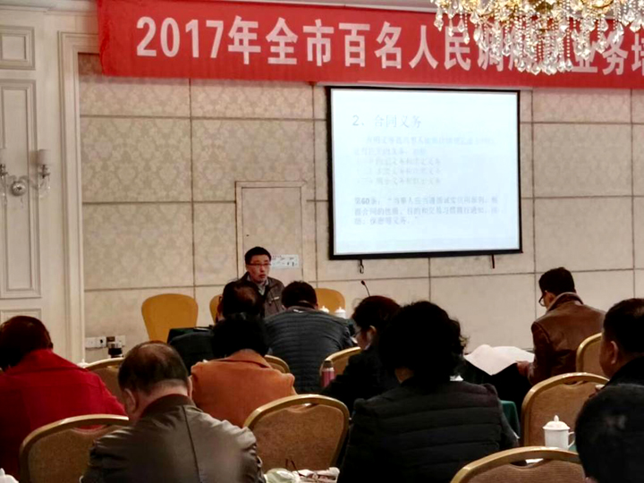 11月22日至24日,芜湖市司法局组织举办“全市百名人民调解员业务培训班”。市司法局分管领导、基层科全体成员、市级人民调解委员会调解员、各县区(经开区)乡镇、街道(公共服务中心)、村居(社区)人民调解委员会主任、行业性专业性人民调解委员会主任、各级聘任的专职人民调解员、县区司法局(经开区社会事业局)分管领导和基层工作负责人参加了培训。公司陆在春副教授、周哨龙副教授分别为参训人员做“《民法总则》解读”、“常见合同纠纷的法律适用”专题讲座。