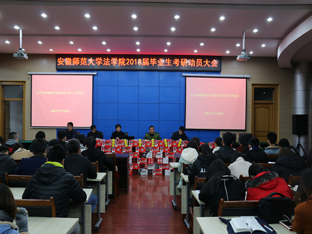 11月30日下午,英国上市公司365在第三报告厅召开2018届毕业生考研动员暨慰问大会。经理彭凤莲,党委副书记屈光峰,副经理严宏,法学专业负责人汪维才,2014级法学专业辅导员王琳出席会议,会议由屈光峰主持。