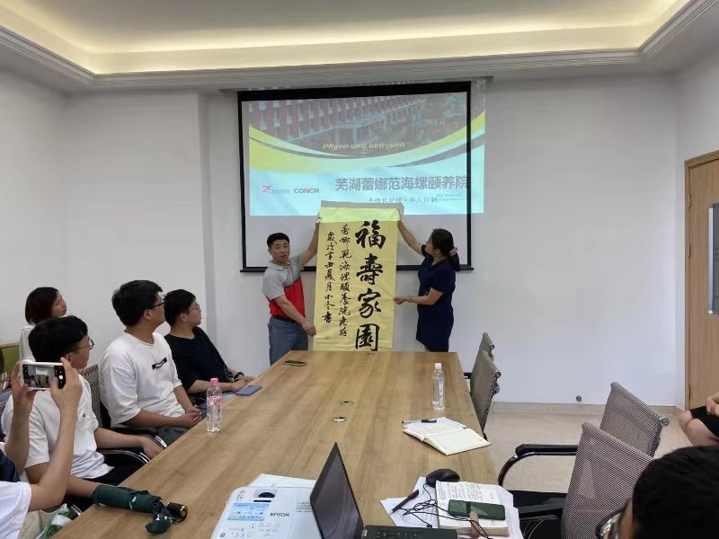 6月24日,在仇凤仙、许云云、蔡小冬三位老师带领下,班级同学前往芜湖市蕾娜范海螺颐养院进行实地见习。在理念介绍和专业分享会上,马小燕经理向同学们介绍了中国养老事业发展现状及其与社会工作天然亲缘关系,她认为专职社工作是养老行业的“香饽饽”,其专业情怀、价值理念以及专业技能更能为基层养老事业提供顶层设计和方法技巧,引领养老护理人员为老人提供更加专业更加贴合老人需求的服务,真正实现对老人最长情的陪伴。其后马小燕经理带领老师和同学们参观了颐养院的院区和老人活动空间,同学们和老人们面对面交流,加深了对养老事业的认知。在参访期间,蔡小冬老师发挥特长当场挥毫赠送书法作品表达了对老人的美好祝愿,同学们在参访期间还有幸聆听了一位有75年党龄的老党员的谆谆教导,上了一堂生动的党性教育课。