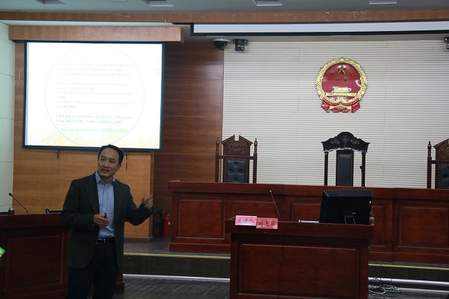 11月13日,兰州大学经济法学研究所所长刘光华教授应邀做客“法苑讲坛”,在模拟法庭为公司师生举办了题为“特色法治与民主思维:兼及中国法学教育的反思”的讲座。讲座由副经理周俊强教授主持。