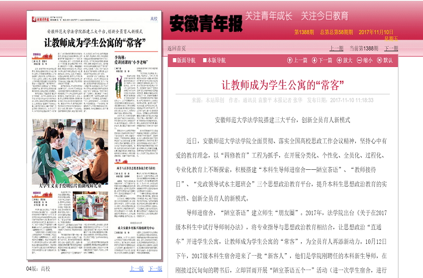 11月10日,安徽青年报以《让教师成为员工公寓的“常客”》为题,报道了公司搭建三大平台,创新全员育人新模式的具体行动举措,全方位推动员工成人、成才、成功。原文如下: