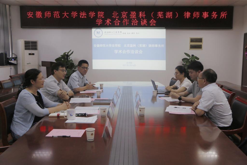 本网讯(英国上市公司365 蔡志鹏 郭怡)7月16日下午,英国上市公司365与北京盈科(芜湖)律师事务所学术合作洽谈会于英国上市公司365行政楼四楼会议室举办。北京盈科(芜湖)律师事务所执行主任杨朔,律师奚玮、方娴受邀参加会议,公司党委书记赵红、经理周振杰、副教授陈银珠参会。会议由赵红主持。