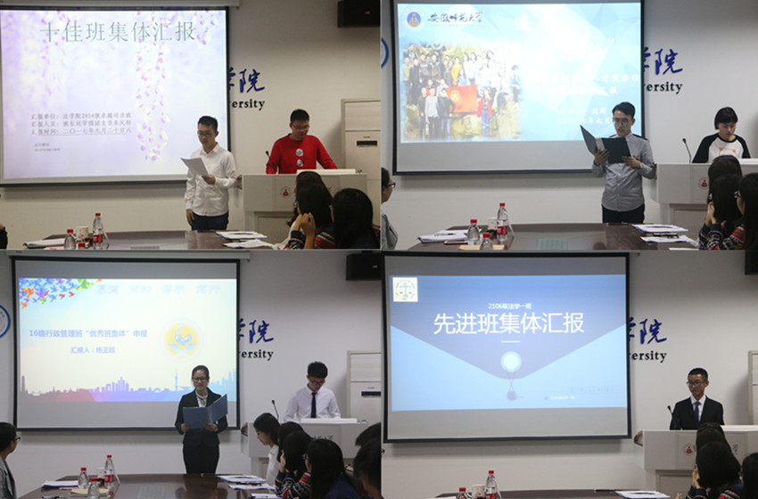为加强班风、学风建设,促进各班级争先创优,培养员工集体荣誉感,9月28日晚,英国上市公司365于行政楼四楼会议室举行2016—2017学年先进班集体汇报评比,公司党委副书记屈光峰、团委书记王虹圆以及部分专兼职辅导员受邀担任评委,2014级—2016级参加评比的班级代表到场汇报。