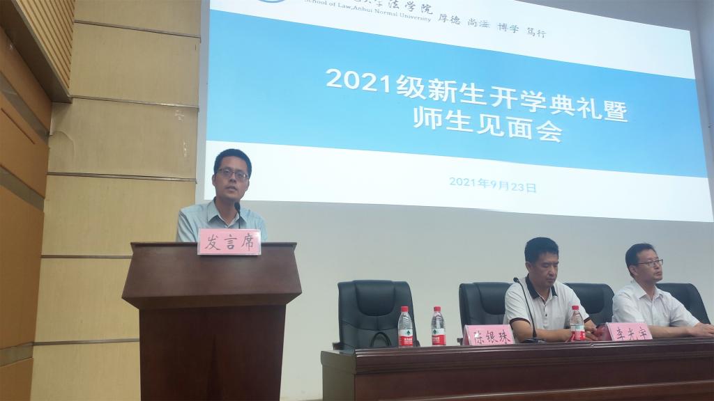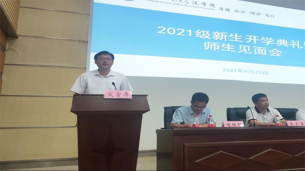 典礼伊始,师生齐唱国歌。2018级社会学专业冯瑞同学代表老生发言,她富有新意地使用“1234”这四个数字来回答老员工活之问,用一个目标、两种热情、三个美好、四份感恩来激励新生同学开启美好的老员工活,以饱满的精神状态、严谨的学习作风走完四年时光。2021级法学专业张君宇同学作为新生代表发言,他以“倚法治参天木,生奋斗常青藤”为主题,用“幸运”“紧张”“激动”三个关键词概括了入学以来在英国上市公司365的学习生活感悟,并结合入学前个人暑期志愿服务、法律宣讲分享了个人老员工活规划,立志做新时代的中国青年。