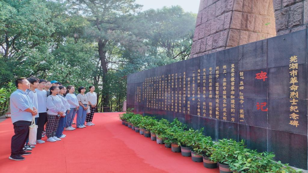 忆峥嵘岁月,重温入团誓词。10月1日,辅导员赵悦带领团员新生代表在神山公园开展“青春心向党”系列之一“重温入团誓词”团日活动。同学们在革命烈士纪念碑前面向团旗重温入团誓词,在革命烈士纪念馆内追寻芜湖优秀儿女的红色足迹,在神山公园树荫下畅谈家乡的红色记忆。来自山东利津的祁家惠驻足在烈士画像前肃然起敬,通过分享观后感表达了对革命先烈的追思、敬仰和学习之情。来自江苏淮安的翟华永和浙江台州的陈雷雷分别以总理故乡和传统渔村文化开头,讲述了刘老庄八十二烈士陵园、戚继光抗倭遗址等红色旅游景区,由家乡的回忆缅怀革命烈士走过的红色旅程。来自安徽黄山的方舟激情洋溢地为大家介绍了世界文化与自然遗产黄山,从自然景观到徽派建筑、从松石奇观到黄山烧饼,远离家乡的同学们都表示感受到了安徽旅游的丰富多彩、安徽人民的热情友好。团员青年们畅谈留校感受,在讲述家乡的同时也与同学重温了一堂鲜活而又生动的党史课。