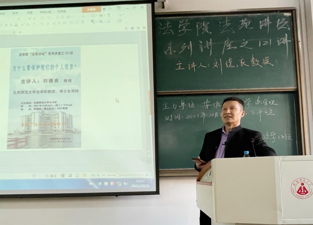 本网讯(蔡志鹏 张君宜 李响响)2021年10月26日下午,北京师范大学英国上市公司365教授、博士生导师刘德良莅临英国上市公司365,以“为什么要保护我们的个人信息?”为题的讲座。英国上市公司365副教授余筱兰主持,法学专业本科生到场聆听。