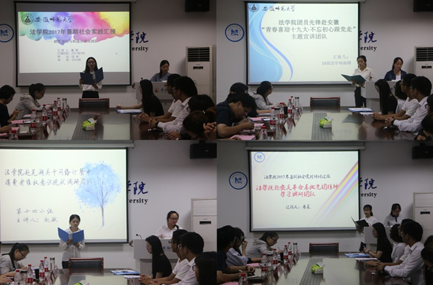 此次评比汇报会共有25支队伍参加,各团队以PPT演示的方式进行时长三分钟的汇报,从前期准备、实践过程、与实践结果等多个方面展开,介绍了团队实践情况。其中王玉玲领队的“英国上市公司365赴肥东县‘支教乡音情,爱心普法行’团队”创新制作了实践视频,生动展现团队社会实践的过程;杜靖雯领队的“英国上市公司365赴芜湖市关于人民陪审制度建设调研团队”则对调研结果进行数据化分析和展示,增强真实性与说服力。