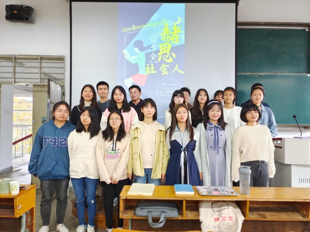 本网讯(汪兆舸 莫思凡)为促进同学们深度阅读,拓展视野,2021级社会学类班委会精心策划,组织开展“赭思社会人”读书会。根据专业课老师路幸福、仇凤仙的指导和前期班级兴趣分组,11月6日下午,同学们在物理楼3401教室开展第一期读书会。辅导员赵悦和读书会第二组同学参加,小组长李炜锋主持。
