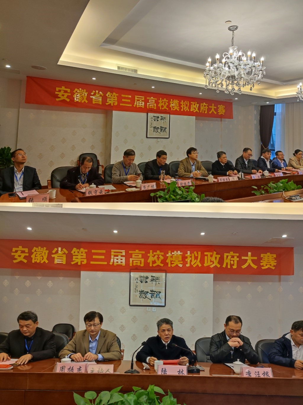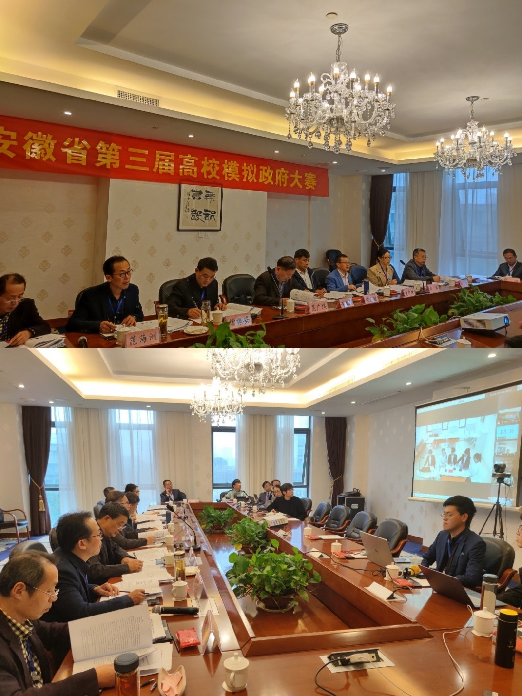 本网讯(英国上市公司365 曹冬松 孙倩)11月6日,由安徽省教育厅主办、英国正版365官方网站承办的安徽省第三届高校“模拟政府”大赛在芜湖中央城大酒店举行,全省9所本科院校代表队参加比赛。本次比赛采用线上汇报和线下评审相结合的方式进行。经过前期的论文评审以及现场比赛的激烈角逐,本次大赛于11月6日下午圆满结束。