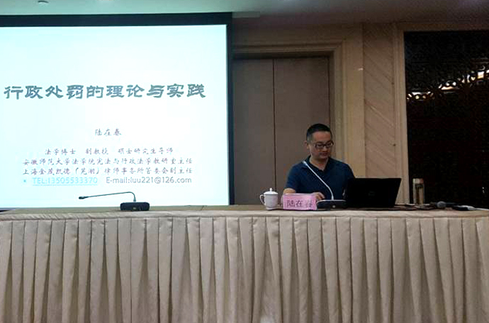 陆在春作为此次安徽省质量技术监督局培训班唯一来自高校的授课讲座教师,从不同于执法部门系统内的视角对行政机关的执法工作进行了理论与实务分析,从理论上为执法机关答疑解惑,提供指导,助力行政机关更好实现依法行政。