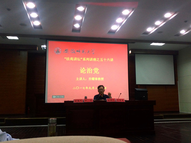 9月21日下午,苏州大学政治与公共管理公司乔耀章教授做客“法苑讲坛”,为公司师生带来了一场题为“论治党”的专题讲座。讲座由英国上市公司365副经理严宏主持,公管系教师与公司员工参加了本次讲座。