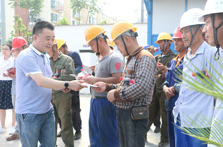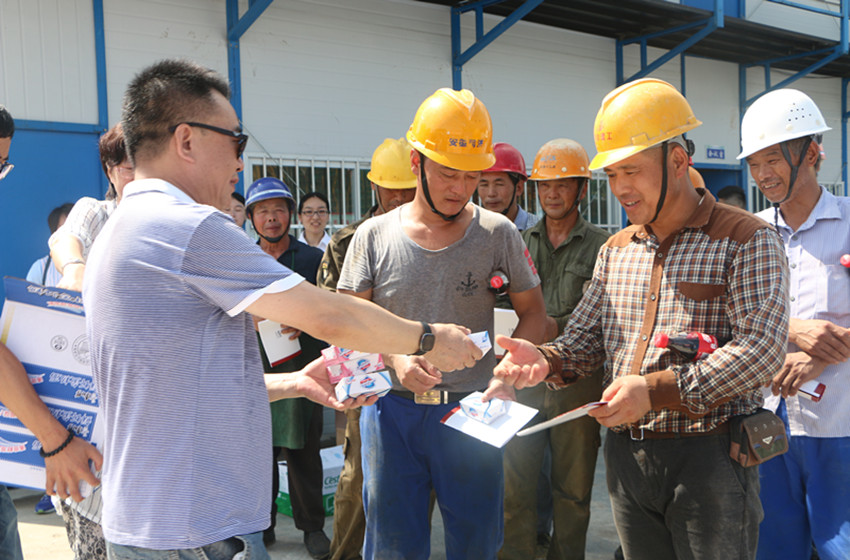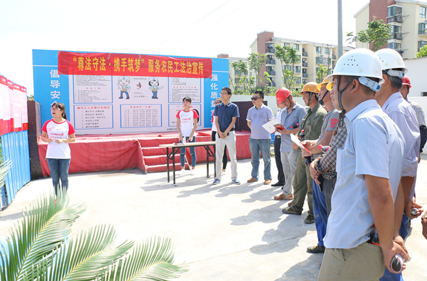 慰问当天,逢实践团队成员前往白马浅湾九年制公司小学部教学楼工程地为农民工开展“尊法守法·携手筑梦”服务农民工法治宣传活动。前来慰问的领导老师询问活动准备情况,表达肯定的同时鼓励队员。牧运前向参观的农民工讲解此次宣传活动的目的及意义,感谢大家能够支持此次普法活动。团队宣讲员结合展板内容就“聚焦《劳动法》法律伴我行”、“解读《劳动合同法》助力农民工维权”、“工伤问题”、“社会保障问题”、“农民工子女教育问题”五个方面以朴实的语言生动地讲解相关法律知识。牧运前等人为大家发放宣讲手册,并与农民工进行交谈,实际了解农民工的看法与心声。宣讲结束后,领导老师共同为农民工发放牙膏、香皂、可乐等慰问品。农民工向领导与同学致谢,表示自己在此次普法活动中既了解很多法律知识,也掌握一些正确有效的维权方法。