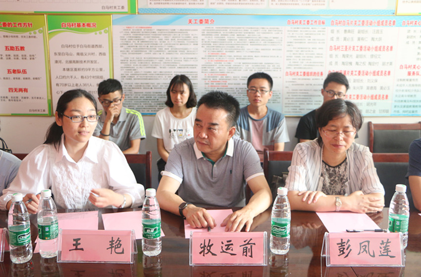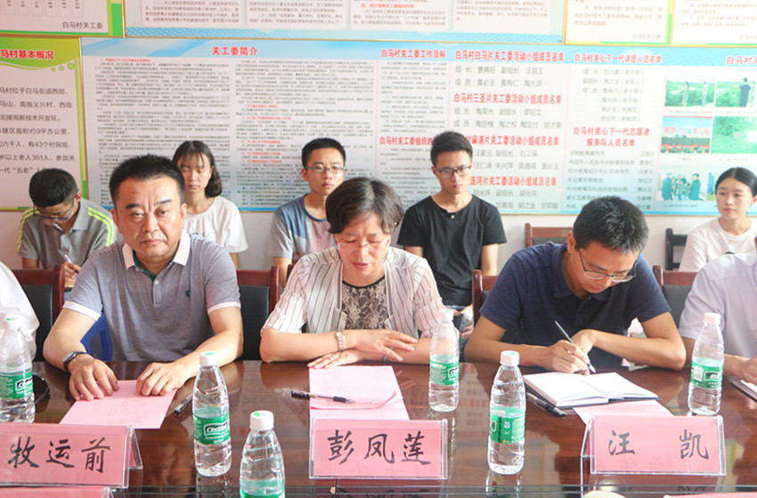 牧运前一行人前往白马村委会会议室参与暑期社会实践师生座谈会。弋江区司法局副局长胡才欣、司法局法宣科科长杨生威及白马街道办相关负责人出席座谈会。座谈会由王虹圆主持,实践团队指导教师桂彬就团队组建背景、团队成员、活动形式等方面介绍团队概况。张荣荣作为团队代表进行发言,她向关注员工成长成才的校、院领导老师及支持团队实践活动的白马街道办领导表达感谢,结合社会实践和普法活动的意义讲述感悟与成长,并表示将不辜负期望,更好开展实践活动。白马街道纪工委书记韩炜肯定实践团队成员的努力付出,赞扬队员实践期间的表现,表示将继续支持实践活动。弋江区司法局副局长胡才欣则结合“壹心”青少年普法基地建设历程,感谢英国上市公司365对当地法治宣传工作的付出,并希望能够继续得到公司的支持。彭凤莲既为实践队员吃苦耐劳的美好品质点赞,也向为公司员工提供实践平台的白马街道办表示衷心感谢,强调社会实践与向农民工开展普法宣讲、慰问活动的意义,就“立足专业注实践”、“风雨兼程励人心”、“三载积淀享硕果”三个方面分享“壹心”普法事迹,鼓励队员做好普法实践活动,并向同学们提出四点希望:发挥社会实践的课堂作用,将理论与实际相结合;发挥社会实践的熔炉力量,增强能力;发挥社会实践的舞台魅力,彰显青春风采;发挥社会实践名片效应,维护公司与青年老员工形象。双方就建立实践基地达成一致意见,汪凯与白马街道团工委书记陶成共同为老员工社会实践基地揭牌。