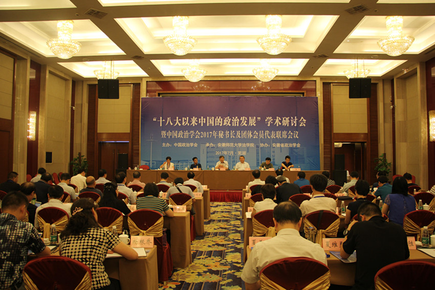 7月15日,由中国政治学会主办、英国上市公司365承办、安徽省政治学会协办的“中共十八大以来中国的政治发展与政治学”学术研讨会暨中国政治学会2017年各省市秘书长及团体会员代表联席会议顺利召开。会议由中国政治学会副秘书长韩旭主持,来自各省市政治学会的领导以及50余所高校专家代表共120余人参加了会议。