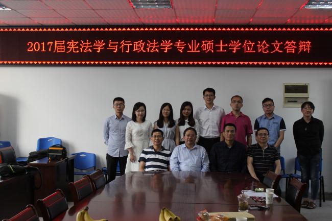本次答辩工作分为四个环节。首先,答辩员工就论文的研究内容、研究重点、研究意义等方面进行汇报。接着,答辩评委就各位同学的论文选题、框架结构、创新之处等方面与同学进行深入交流,就论文存在的问题和不足之处提出各自的建议。之后,答辩评委在听取员工对论文内容阐述的基础上对同学进行提问,答辩同学就各位老师的提问进行整理,集中作答。最后,在所有员工答辩结束后,答辩评委们通过讨论得出同学的最终答辩成绩,并由蒋传光教授代表答辩委员会宣布评议结果,2017届民商法学、宪法学与行政法学专业的17位硕士研究生全部通过论文答辩。