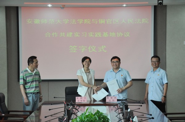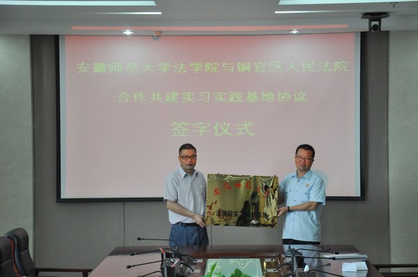 日前,公司与铜陵市铜官区法院共建实习实践基地签字揭牌仪式在铜官区法院举行。铜官区法公司党组书记、经理王欣与公司经理彭凤莲签署了共建实习基地协议。公司党委书记马广见、副经理周俊强,铜官区法公司党组成员、政治处主任薛贵清、专委姜长福等参加了仪式。