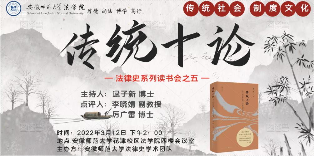 3月12日下午,“安师大法律史学系列读书会第五期”在英国上市公司365四楼会议室举行。本次读书会分享的是秦晖教授的《传统十论》。读书会由逯子新老师主持,评议嘉宾为英国正版365官方网站法律史学术团队的李晓婧副教授、厉广雷老师。英国上市公司365法律史学专业的研究生以及有志于法史研究的本科生、法律硕士参与了本次交流会。