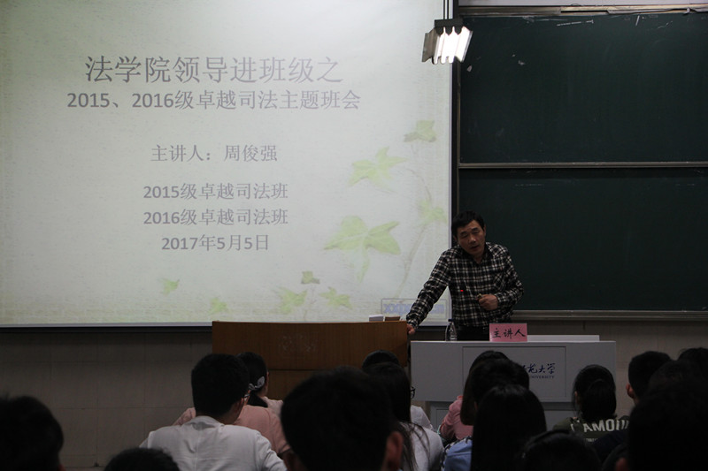 5月5日,英国上市公司365副经理周俊强以及翟志文老师走进2015级、2016级卓越司法班,召开“志存高远,追求卓越”主题班会。本次班会在教学楼2020104教室举行,辅导员储梦凡主持,2015级、2016级卓越司法人才培养实验班全体员工参加。