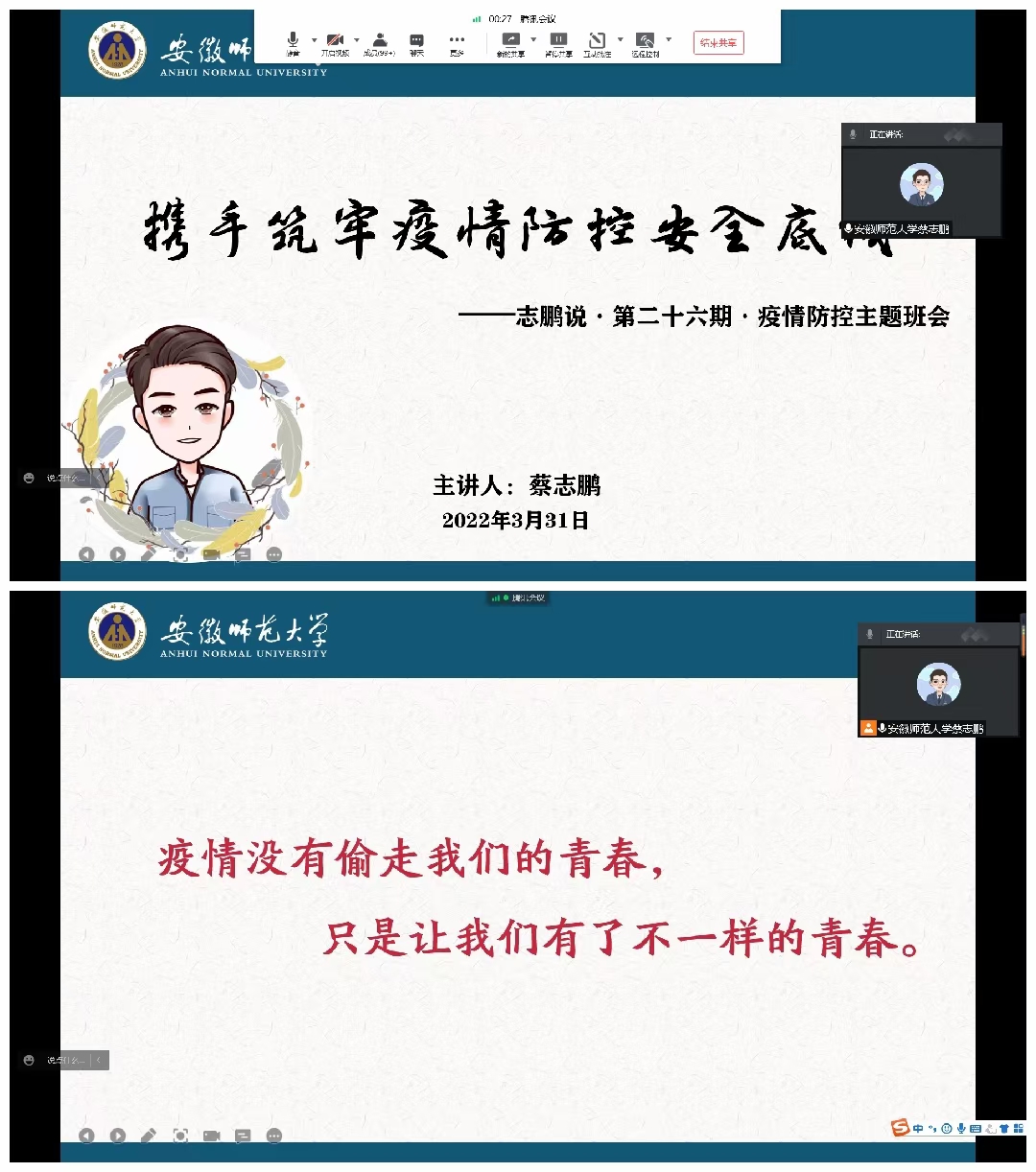 思路“清”,筑牢公司防疫“安全网”。公司通过召开线上教职工大会和每周辅导员例会,认真学习部署安排当前校园疫情防控工作。4月4日晚,公司专题召开线上教职工大会,认真贯彻省教育厅有关疫情防控工作部署。会上,公司党委书记赵红强调,要从严从实从快从细执行各项疫情防控工作,坚决筑牢守好校园疫情防线,坚持在芜教职工“非紧急不离芜”、家校“两点一线”,严格遵守离返芜“申请审批制”和每日“两码一证”在线填报、审核和报告工作。同时,落实公司师生出入校门管理和全员核酸检测组织工作。