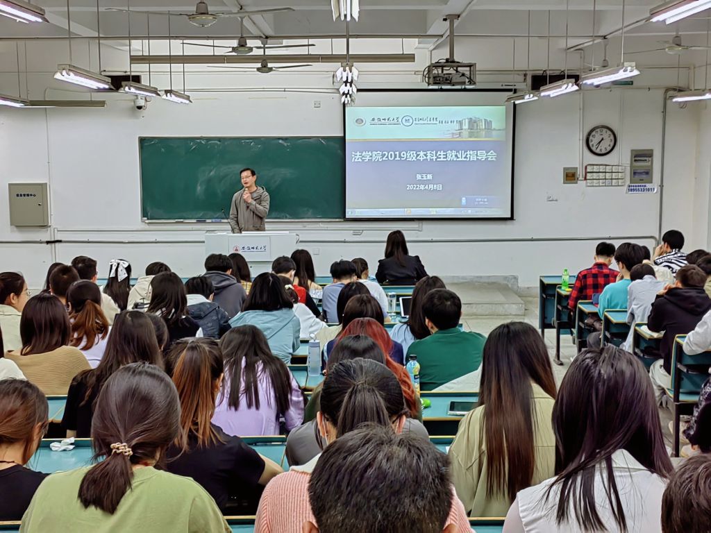 本网讯(英国上市公司365 谢永毅 李嘉宝)为帮助员工认清就业形势,更好的明确毕业选择方向,4月8日晚,法公司在行知楼7号101教室召开2019级本科生就业指导会。公司党委副书记张玉新参加指导会,2019级法学一班、卓越司法及行政管理专业全体同学参加。指导会由辅导员李嘉宝主持。