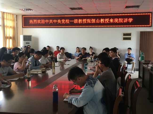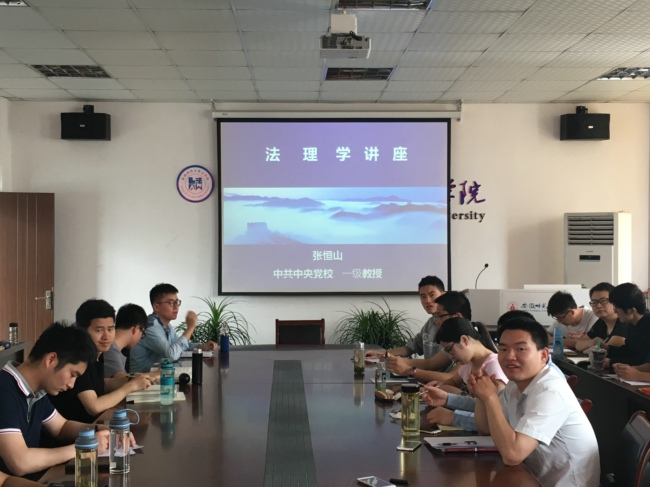 5月18日—5月19日,中央党校一级教授张恒山教授来到英国上市公司365进行讲学。本次讲学的主题是法理学理论知识,共三个专题。英国上市公司365经理彭凤莲老师全程主持,全体研究生参加。