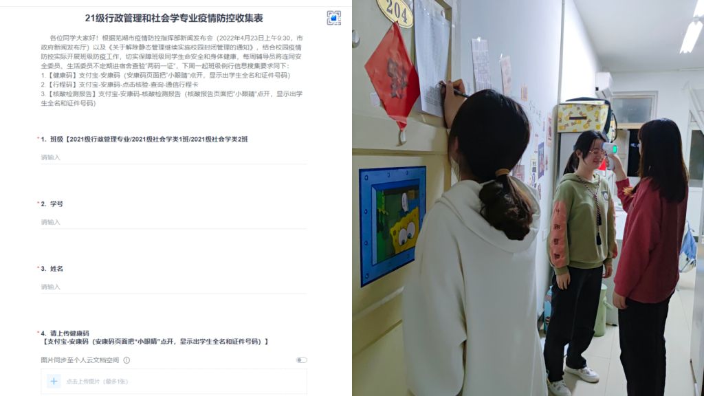 静态管理期间,学工人员下沉一线值班值守,加强进课堂、进宿舍、进操场、进食堂,及时开展谈心谈话了解思想舆情动态;每日深入核酸检测和课堂教学一线,分班级带领员工参与核酸检测。员工骨干关键时刻勇于担当,组织完成健康监测“日报告”、“晨午晚”体温检测、班级“两码一证”信息收集等任务,在抗疫中彰显青春力量。