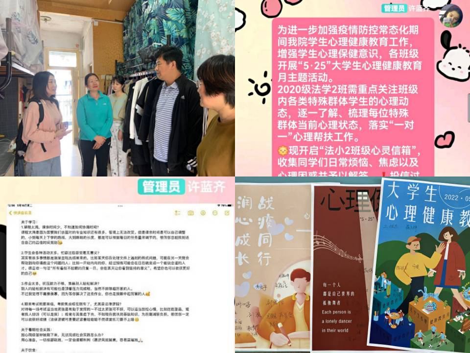 线上线下同频交流,细致排查心理状况。“五一”假期期间,公司党委书记赵红、副经理李光宇在辅导员代表和班级心理健康委员的陪同下深入寝室,与同学们展开亲切交流,了解同学们的心理健康状况,并对同学们的相关困惑,针对性的提出了建议与指导,真切落实“一对一”心理帮扶工作,在与员工的沟通交流中把握心理健康教育诉求。同时,各班心理委员通过线上线下结合的方式,逐一了解、梳理班级中特殊群体当前心理状态,并积时给予关心与帮助。通过进行精细化心理状况排查,有效预防突发性心理危机事件,并就存在心理危机的员工及时干预,提升了同学们心理健康素养。
