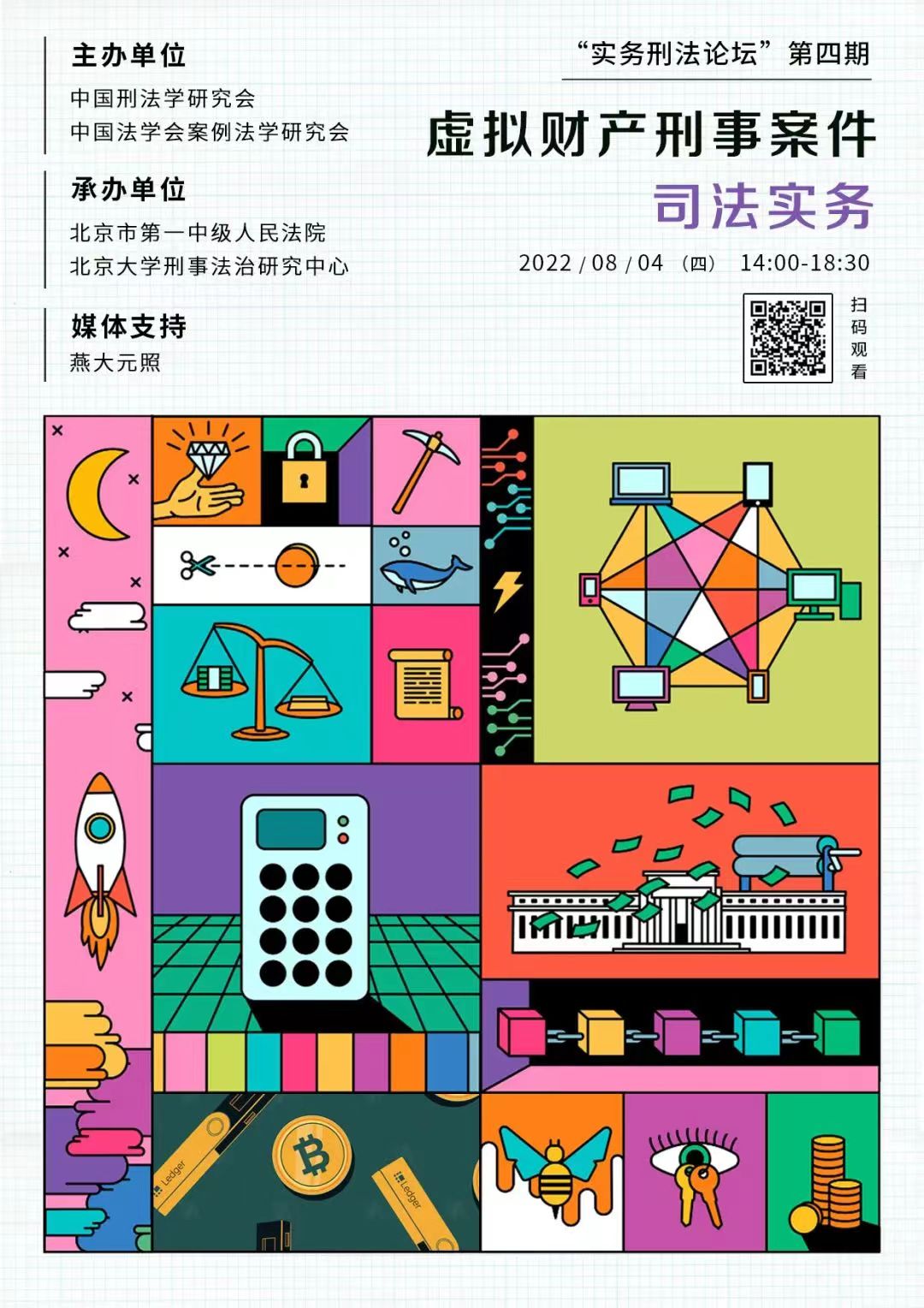 2022年8月4日下午,中国刑法学研究会、中国法学会案例法学研究会联合举办了第四期“实务刑法论坛”,围绕“虚拟财产刑事案件司法实务”,邀请各领域专家交流探讨,通过主题演讲与聚焦司法实践前沿案例及争议焦点,促进刑法理论与司法实务的交流互动,推动理论研究更好地面向司法实务、服务司法实务。来自科研院校、司法实务部门的20余名专家学者、法官、检察官、警官采用“线上+线下”的方式与会,近25万人次在线观看了本期论坛的全场活动。