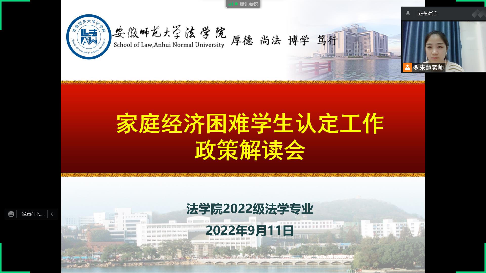 随后,朱慧向新生介绍了家庭经济困难员工认定的原则、标准、认定流程等,进一步确保家庭经济困难员工认定工作透明化、规范化、精细化,切实保证国家资助政策落到实处。