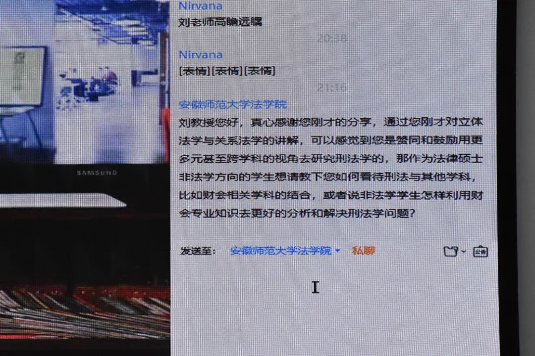 主讲环节结束后,刘仁文老师与公司师生进行了交流。就刑事政策的执行问题,常识常理常情与刑事政策的关系问题,预防必要性如何判断等问题,他认为,常识常理常情通过刑事政策的通道影响立法和司法,应当在报应刑的范围内考量预防刑,在个别案件中防止过度强调一般预防,需罚性主要基于刑事政策的考虑。针对社会舆论与二审改判的关系,他认为,在一些热点案件中,从总体上来看,二审改判的法律效果和社会效果比较好,二审考虑的因素更多,面对的压力更大,但是应当更符合司法规律。针对刑法与其他法律之间的关系,刑法学与其他学科之间的关系。他认为,应然与实然应当区分开;非法本法硕的员工,可以利用自己的专业知识,找到刑法的切入点,发挥优势,成为社会需要的人才。跨学科的理念很重要,但是在实践中有待探索。