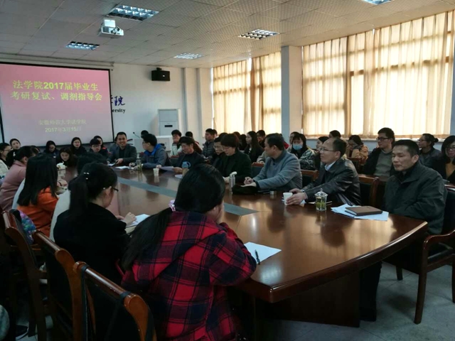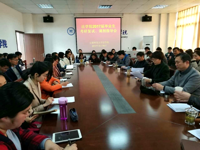 3月15日下午2点,英国上市公司365在行政楼四楼会议室召开了2017届毕业生考研复试、调剂指导会。经理彭凤莲、副经理周俊强、严宏、教授委员会成员、各专业负责人、辅导员及2017届考研过线毕业生参与此次指导会。会议由严宏主持。