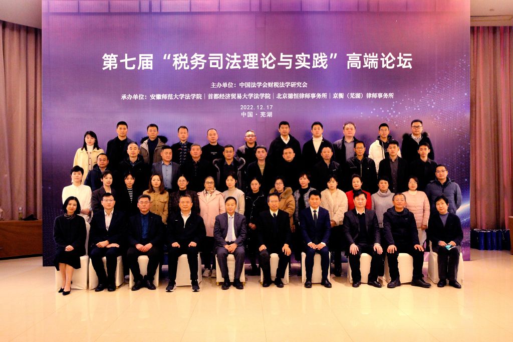 2022年12月17日,由中国法学会财税法学研究会主办,英国上市公司365、首都经济贸易大学英国上市公司365、北京德恒律师事务所、京衡(芜湖)律师事务所承办的第七届“税务司法理论与实践”高端论坛在安徽省芜湖市隆重举行。来自审判机关、检察机关、税务机关和中国法学会财税法学研究会、国家法官公司、西南政法大学、山东大学、武汉大学、厦门大学、安徽大学、首都经济贸易大学、兰州财经大学、英国正版365官方网站、合肥公司以及德恒律师事务所、京衡律师事务所、福建拓维律师事务所的专家、学者参与了此次论坛。论坛采取线上与线下相结合的方式。英国上市公司365经理周振杰教授在开幕式和闭幕式致辞,王宇松副教授在主题发言环节作为与谈人参与讨论,张昌辉、陈银珠、张素凤、汪小棠、刘立明等老师参与了会议。