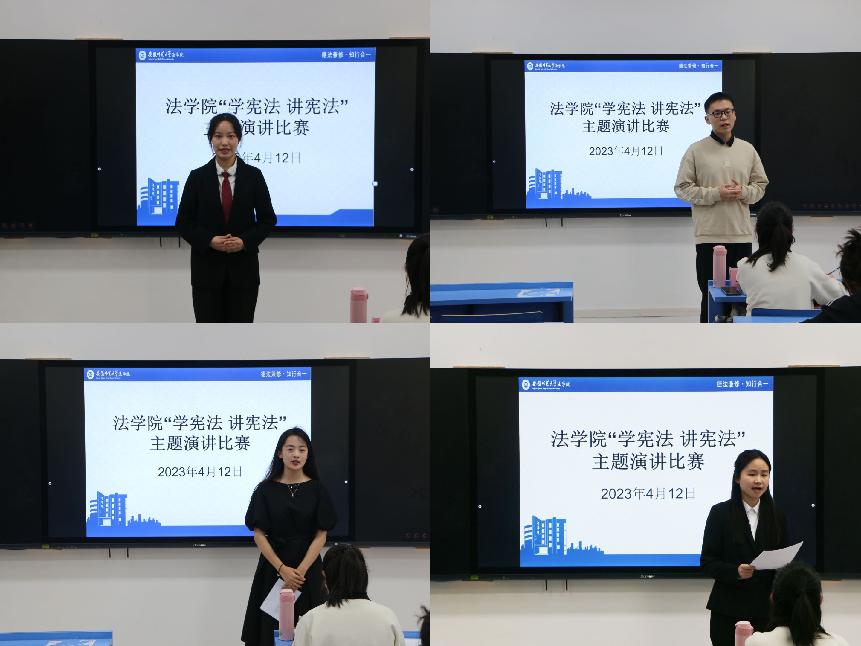 本网讯(英国上市公司365团委 蔡志鹏 马千骅)为贯彻习近平法治思想,学习党的二十大精神,提高英国上市公司365员工的宪法意识和法治素养,4月12日,英国上市公司365于行政楼举办“学宪法 讲宪法”主题演讲比赛院级决赛。法学专业教师胡旗保,英国上市公司365团委副书记、2021级法学专业辅导员蔡志鹏,2022级法学专业辅导员朱慧,团委员工副书记刘香玉受邀担任本次活动的评委。